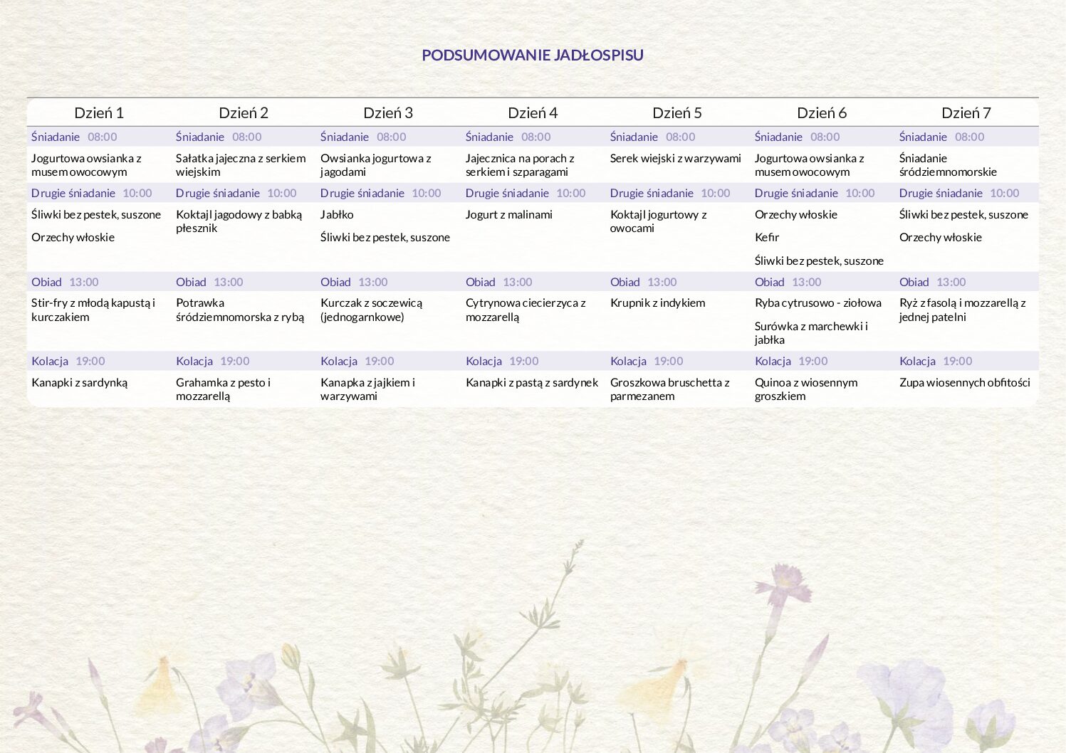 - Jadłospis na 7 dni, zaplanowany tak, abyś mogła korzystać z niego przez 14 dni lub dłużej.